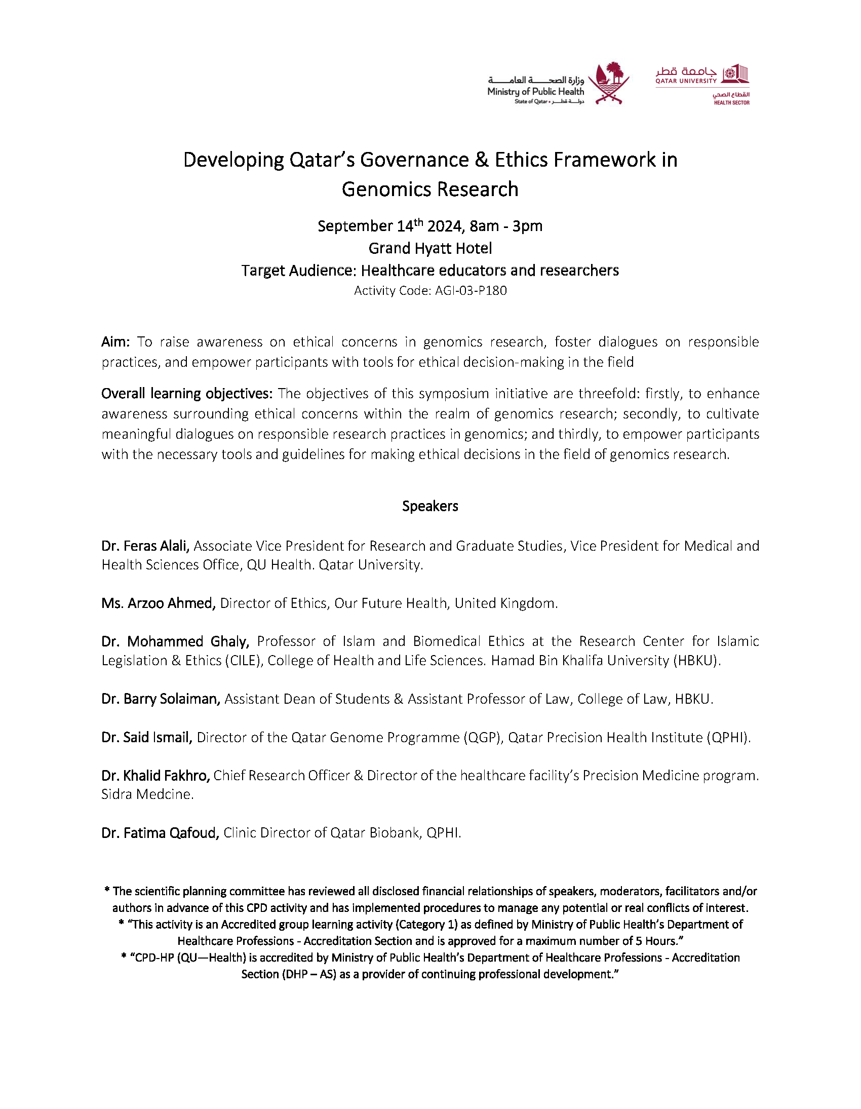 Developing Qatar’s Governance & Ethics Framework in Genomics Research